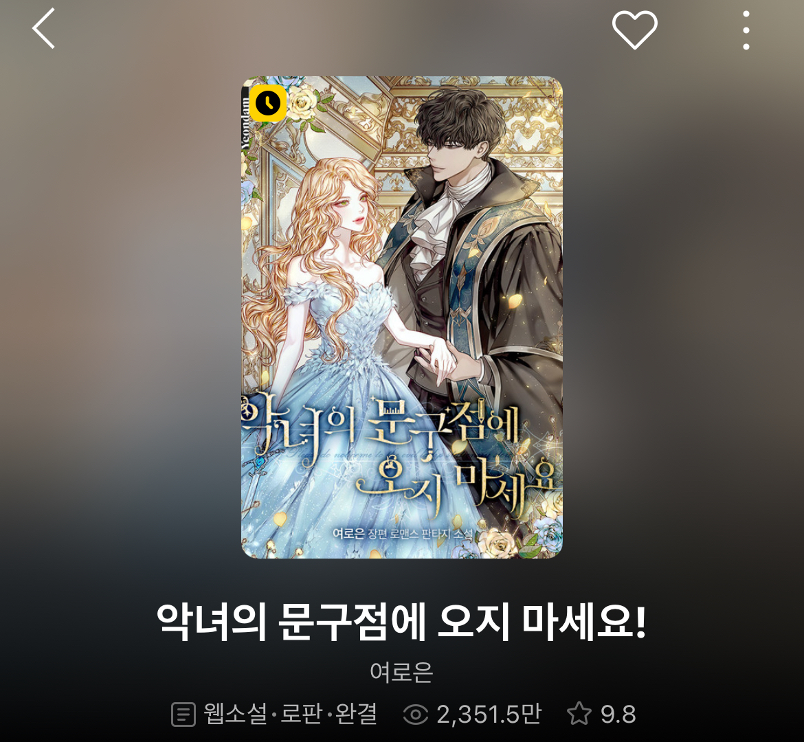 카카오페이지 웹소설 / 완결 / 2,351.5만뷰 / 별점 9.8점